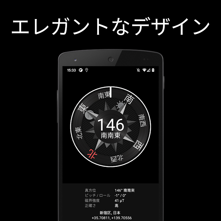 最初に「コンパス」をタップすると「位置情報の使用を許可しますか? 」と表示するので、「許可」をタップします。 方位磁石として使うには、+を中央の十字カーソルに合わせます。 ぴたりと収まるとOKです。 方角が決まった後に画面をタップすると方向がロックします。 赤い部分はロックした方向からのずれです。 ロックした方向は、再度画面をタップAndroid Androidスマートフォンやタブレット、Androidアプリの使い方を解説した最新記事の一覧です。 初めてAndroidを使う人向けの基本操作や設定はもちろん、Google Play(グーグルプレイ)からインストールできるアプリの使いこなしも紹介します。 22年